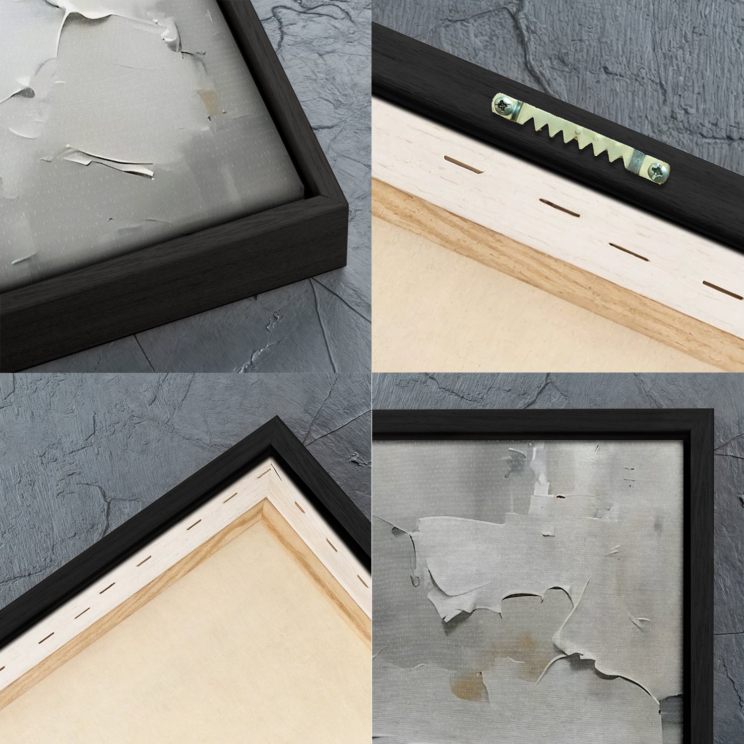 Floating frame made of Italian wood. 12mm wide and 40mm deep.