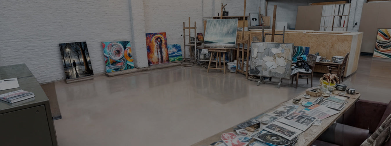 Embrace the behind-the-scenes chaos in my expansive 140 m2 studio! Witness the beautiful mess of creativity at play as artworks come to life amidst the organized chaos.