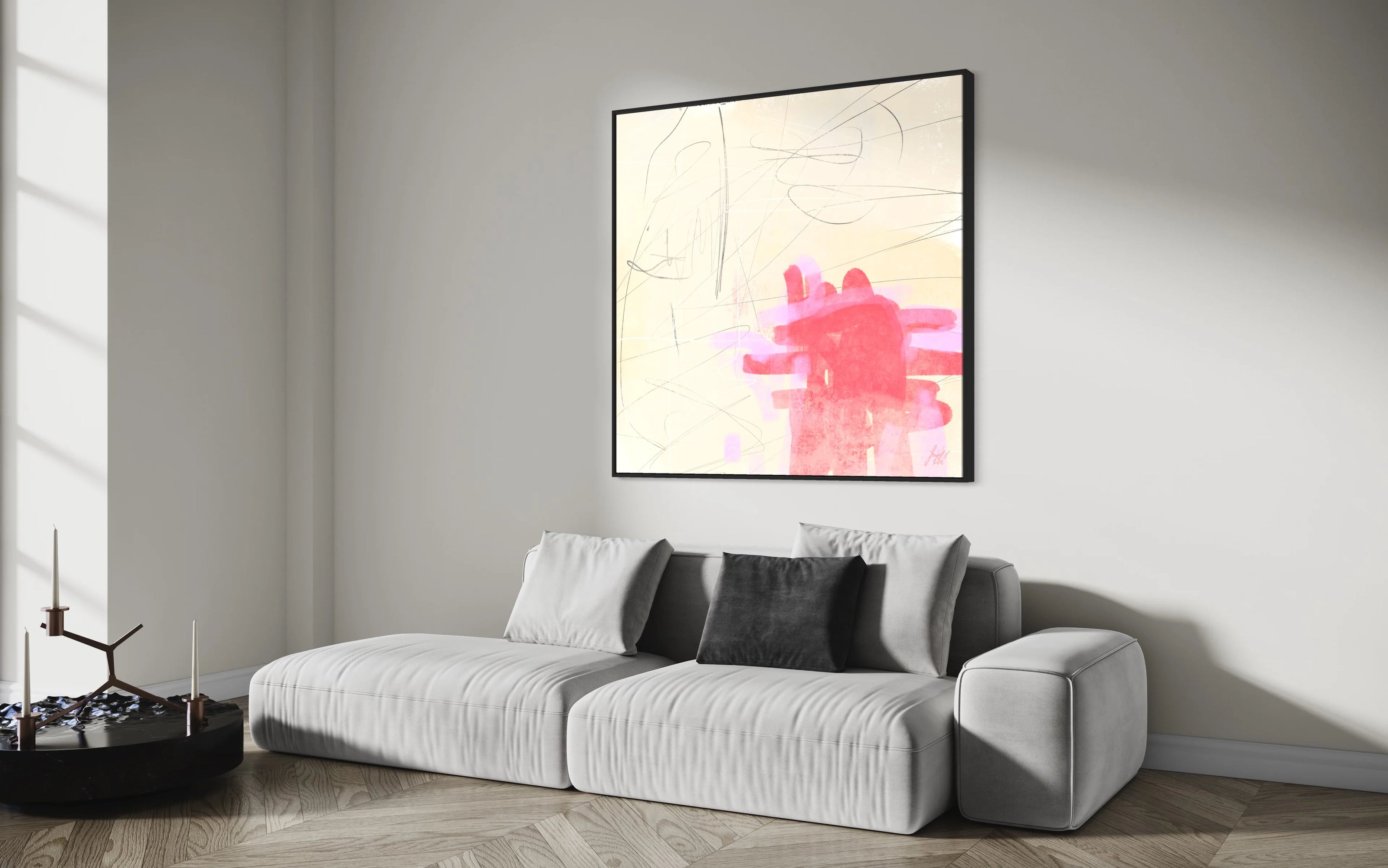 See how my artworks can change the whole room by using the before/after image comparison.